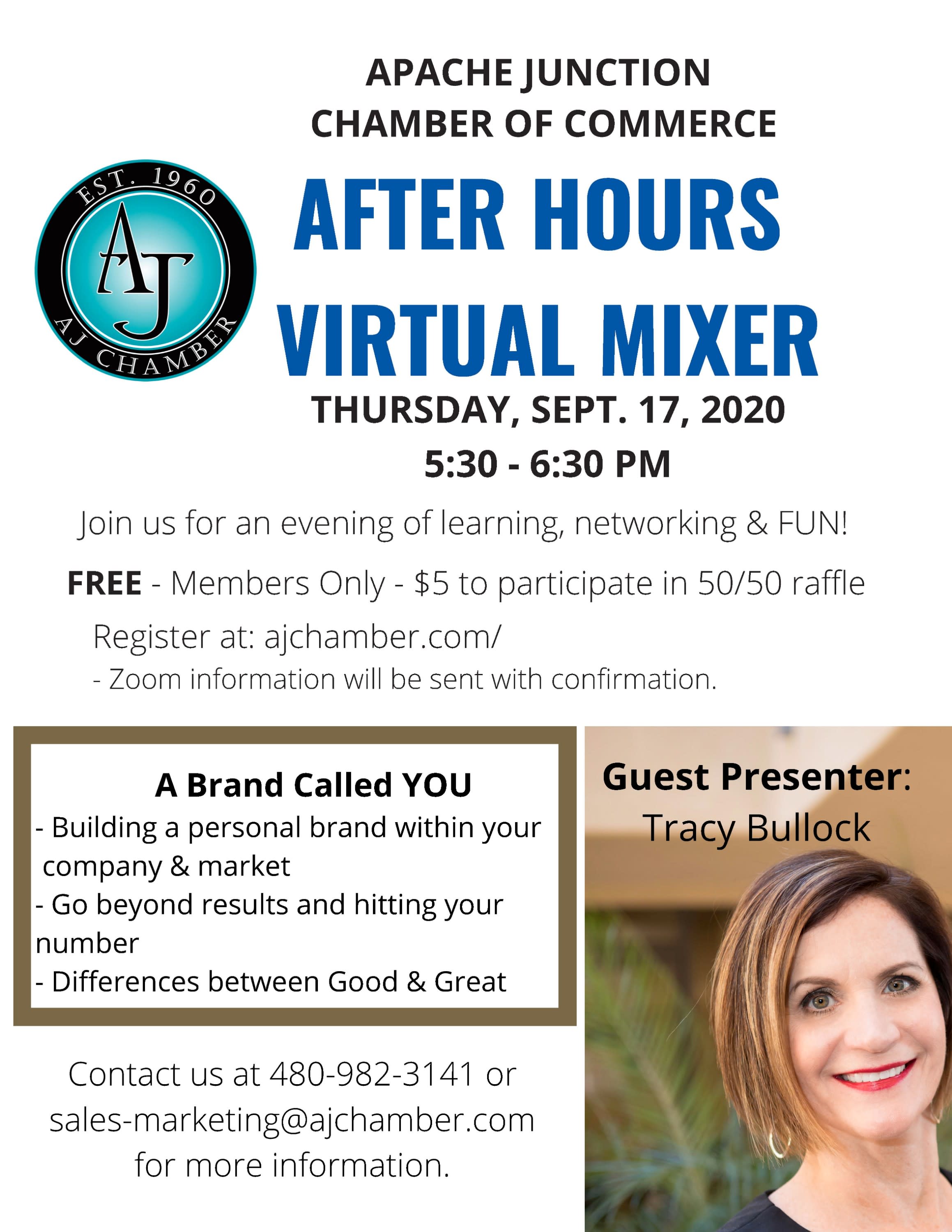 Join us for our first after hours virtual mixer on Thursday, Sept 17th from 5:30-6:30pm. It will be an evening of learning, networking & FUN!